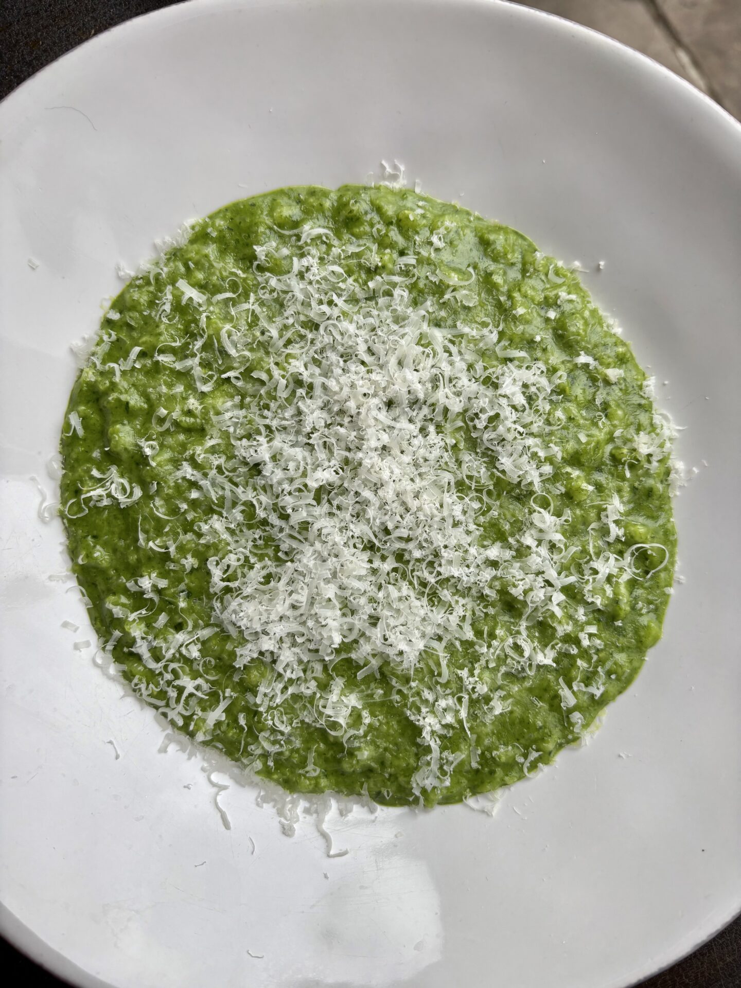 Wild garlic risotto with parmesan – rich and unctuous.